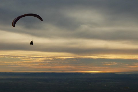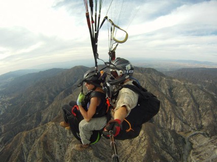 A tandem flight is the perfect way to easily and safely experience paragliding with virtually no experience required. To start off your experience we'll meet in the landing zone to go over some paperwork and get you setup with a comfortable harness. Next, you'll get to experience an exicting offroad drive up the mountain in order to get to launch. Once on launch we'll get you into your harness and explain everything you need to know for launching, flying and landing, this only takes 5 minutes as there is very little you are required to do. Finally we'll try a few practice launches without the wing before getting clipped in. The tandem pilot will inflate the wing overhead and then you and the pilot will run down the hill for a few steps before being gently lifted away from hill. Once in the air you can kick back and relax, take in the views from 3000' above the ground. If you are feeling brave you can take the controls for yourself and feel what it's like to fly a paraglider. If you are even braver we can try some acrobatics as this gentle flight turns in a thrilling roller coaster ride.