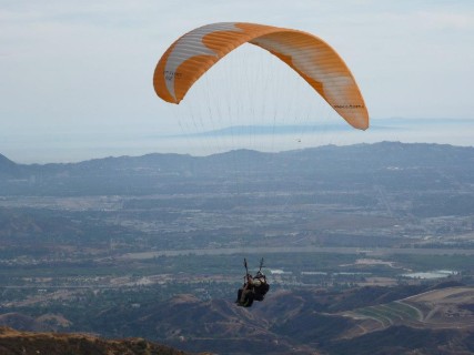 A tandem flight is the perfect way to easily and safely experience paragliding with virtually no experience required. To start off your experience we'll meet in the landing zone to go over some paperwork and get you setup with a comfortable harness. Next, you'll get to experience an exicting offroad drive up the mountain in order to get to launch. Once on launch we'll get you into your harness and explain everything you need to know for launching, flying and landing, this only takes 5 minutes as there is very little you are required to do. Finally we'll try a few practice launches without the wing before getting clipped in. The tandem pilot will inflate the wing overhead and then you and the pilot will run down the hill for a few steps before being gently lifted away from hill. Once in the air you can kick back and relax, take in the views from 3000' above the ground. If you are feeling brave you can take the controls for yourself and feel what it's like to fly a paraglider. If you are even braver we can try some acrobatics as this gentle flight turns in a thrilling roller coaster ride.